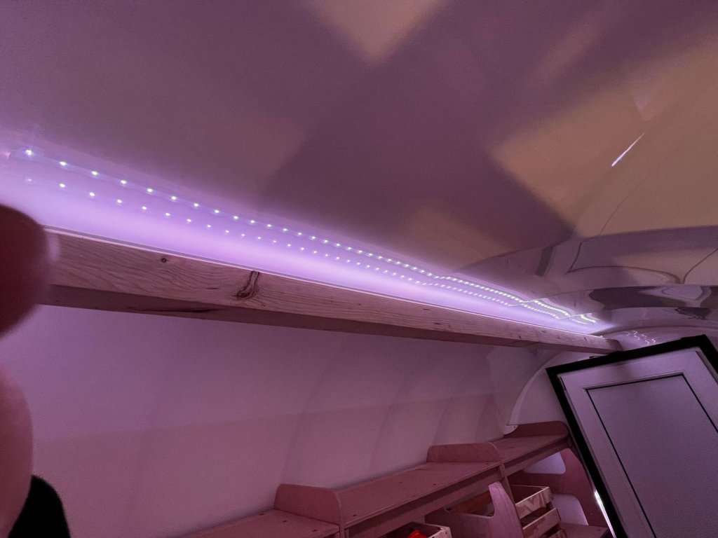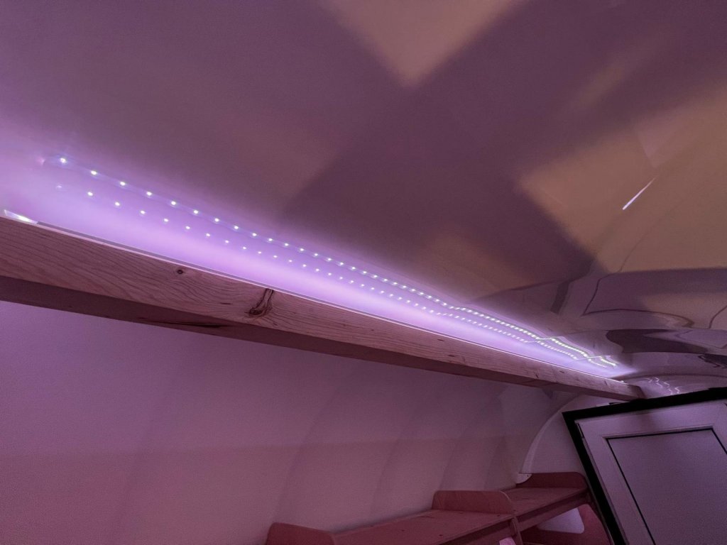 Introducing Quick Ceiling Lights for cellars and shelters. These are LED lights installed on the ceiling of the cellar. Each light is positioned behind a wooden beam for a stylish design and to create a more pleasant lighting effect.