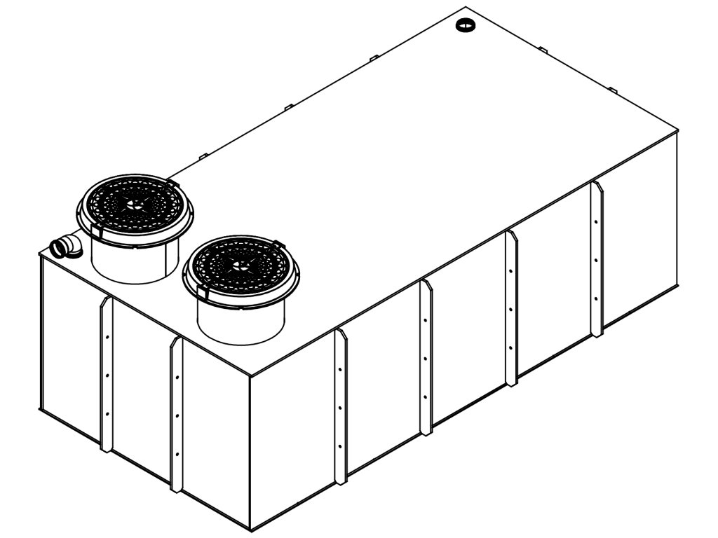 Low-profile, self-supporting rainwater harvesting tank made of polypropylene. With a large selection of volumes. Made for quick and easy installation.