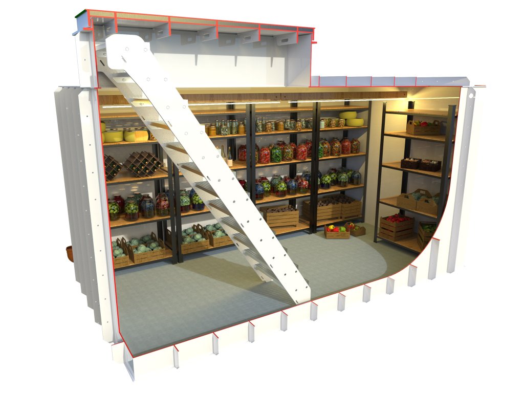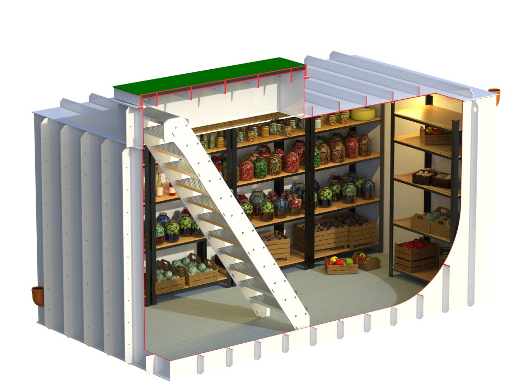 Nové cenově dostupné sklepy pro instalaci do betonu, s hranatým tvarem pro efektivní využití celého prostoru sklepa.