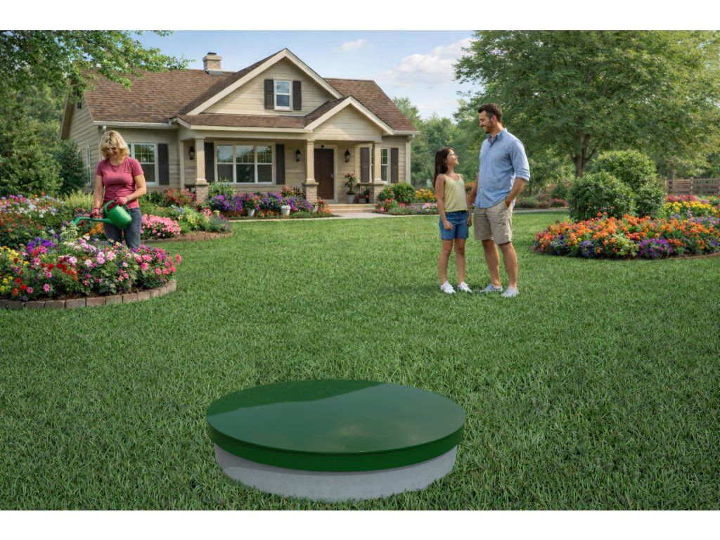 Plastový poklop na studnu a betonové skruže – praktické, lehké a odolné řešení pro každodenní použití.